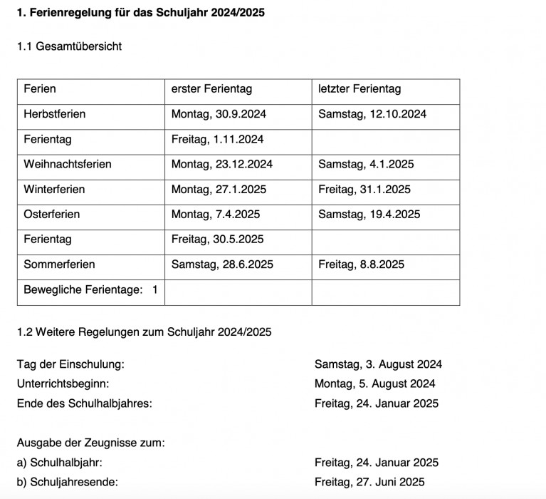 Ferien 2024/25